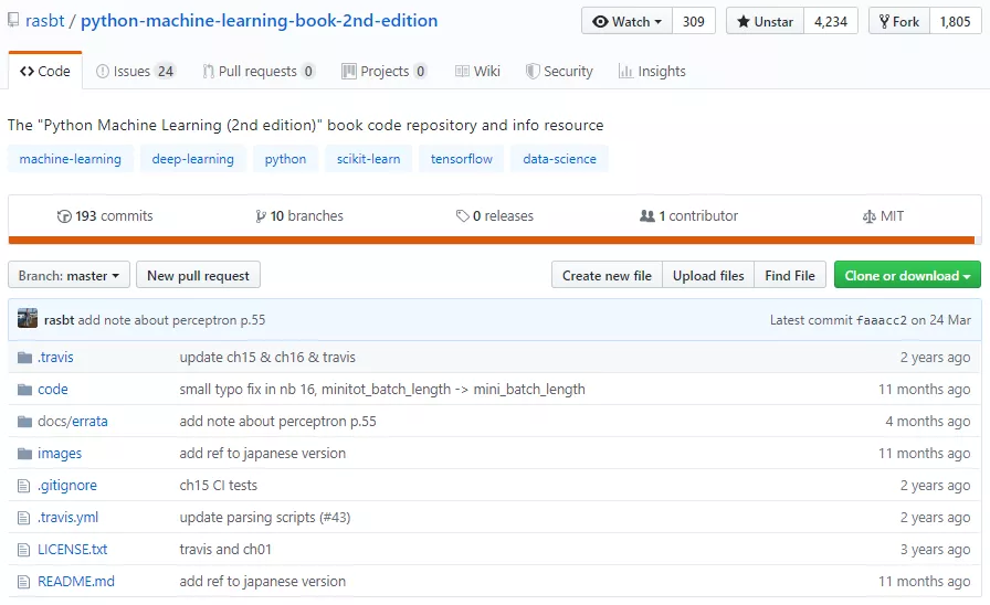 值得高兴的是,作者 Sebastian Raschka 开源了《Python 机器学习》第二版的所有章节中的 Python 代码,放在了 GitHub 仓库中。