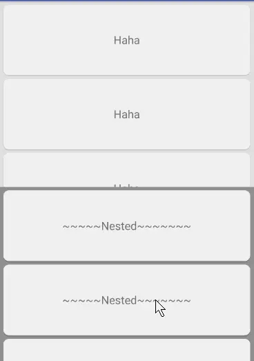 很明显,如果想要实现这个效果,通过常规的事件分发机制很显然是没办法实现的。毕竟上面的Bar一旦开始滑动,说明它已经确定消费此事件,那么在一次滑动中,下面的RecyclerView无论如何也拿不到此次事件。