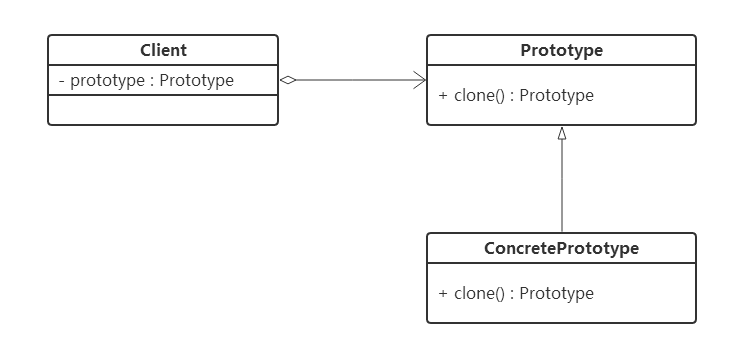 - 具体原型角色:该角色是拷贝的对象,需要重写抽象原型的拷贝方法,实现浅拷贝或者深拷贝。