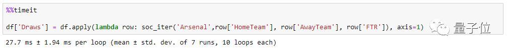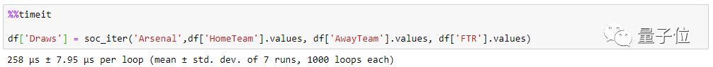 Python不能利用任何内置函数,而且速度很慢。在Benedikt Droste的提供的示例中,是一个包含65列和1140行的Dataframe,包含了2016-2019赛季的足球赛结果。