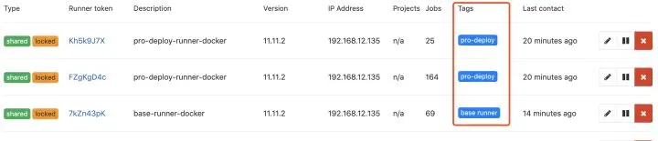 gitlab-runner restart部署完成后,可以在 gitlab 的 web 管理界面查看到不同 Runner 的信息。