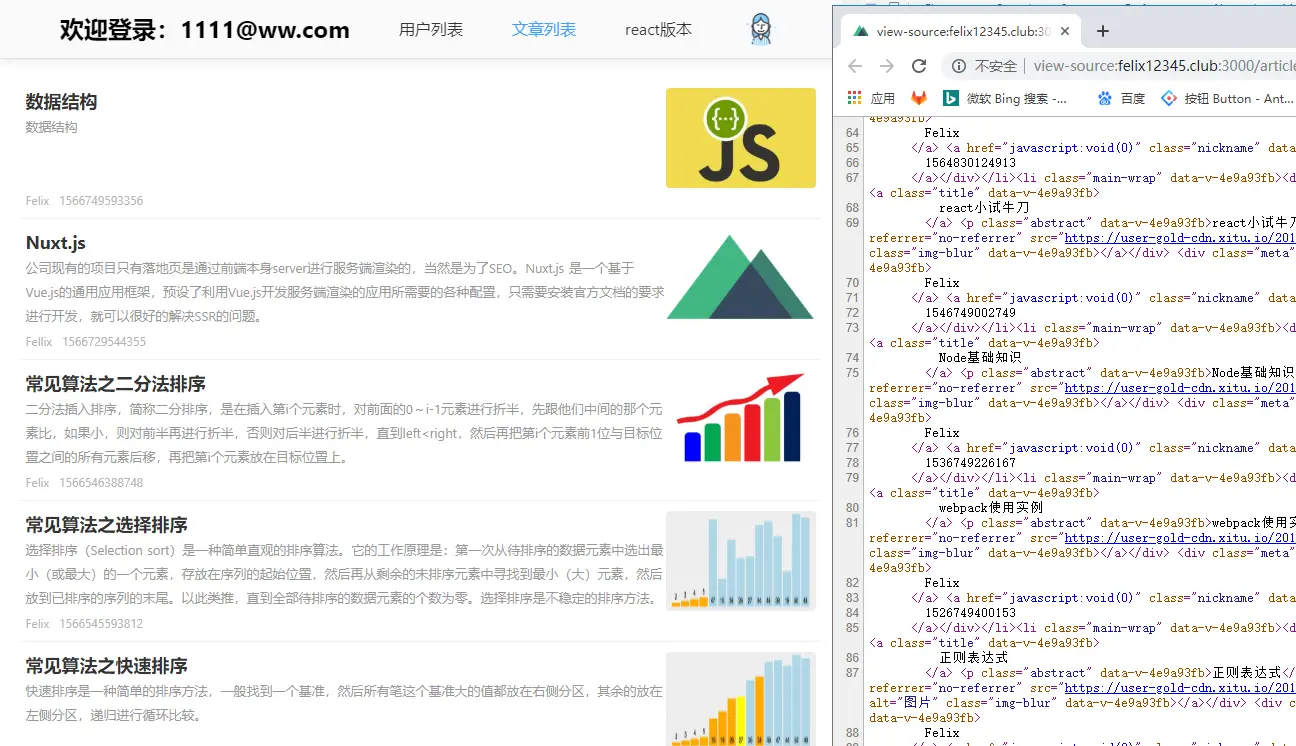 当前基于Nuxt.js的简化版博客,包括注册、登录、文章列表页面、文章详情页、以及用户列表页等几个页面,用户信息使用了Vux进行存储,异步数据使用了asyncData进行获取,配合了nuxtServerInit、cookie来处理刷新页面后Vux数据丢失的问题,同时使用了error模板页面处理常规错误,使用了中间件进行了简单的权限校验。该项目不足点,统一封装了axios的方法,但是没有考虑到服务端请求接口,token的处理。