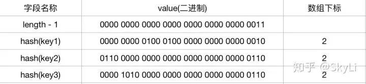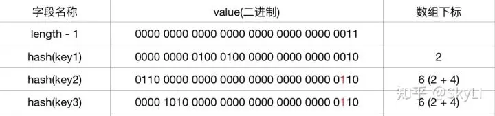 下面是 JDK8 转移中的优化,这里注意下元素迁移过程中的规律,假设 oldCap = 4 则新数组长度变为 oldCap * 2 = 8 时,则hash & (table.length - 1) 的转变过程为: