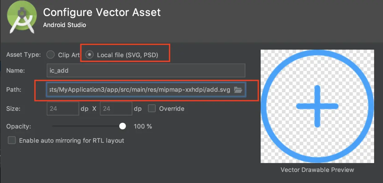 这个转换步骤也可以通过网站:inloop.github.io/svg2android… 进行.