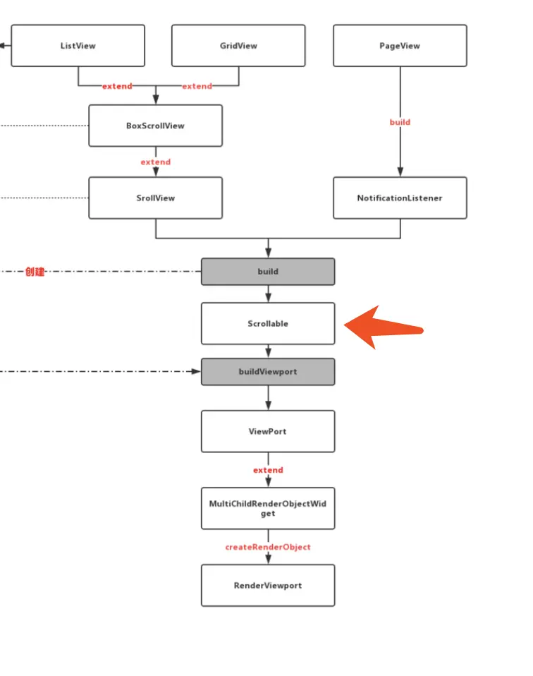 如上图所示,在之前第七篇的时候分析过,滑动列表内一般都会有 Scrollable 的存在,而 Scrollable 恰好是一个 InheritedWidget ,这就给我们在 children 中调用 Scrollable 相关方法提供了便利。