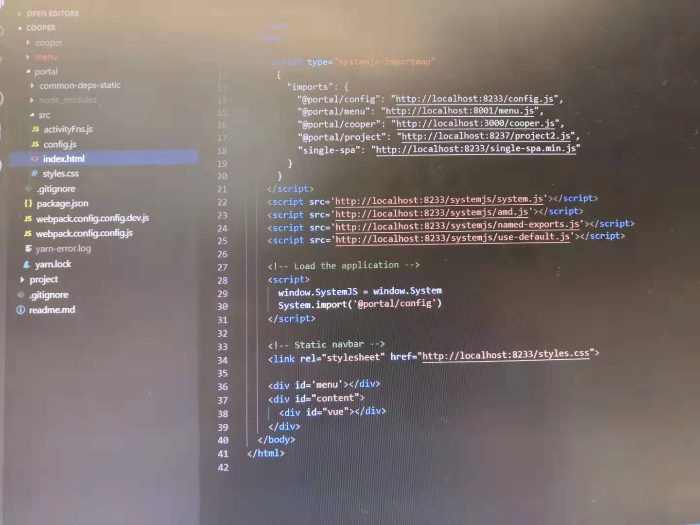 输出的入口文件是menu.js,以AMD形式打包,原因:single-spa是AMD形式,所以也是在portal项目中会引用amd.js的原因。