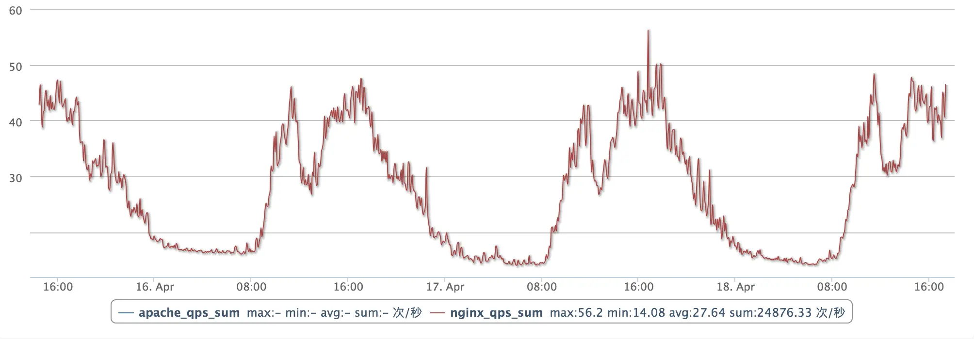 对于大部分互联网的在线应用而言,负载的峰谷分布是存在一定规律的。例如下图是一个典型 web 应用的负载曲线。从每天早上 8 点开始,负载开始飙高,在中午 12 点到 14 点之间,负载会回落;14 点到 18 点会迎来第二个高峰;在 18 点之后负载会逐渐回落到最低点。