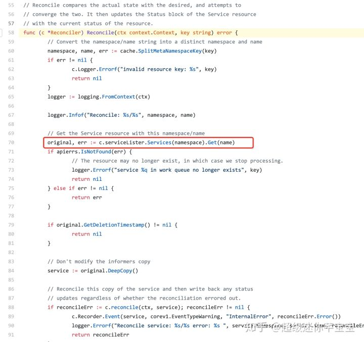 现在就可以在 Reconcile 中通过 c.serviceLister.Services(namespace).Get(name) 这种方式直接操作 Seving 资源了。