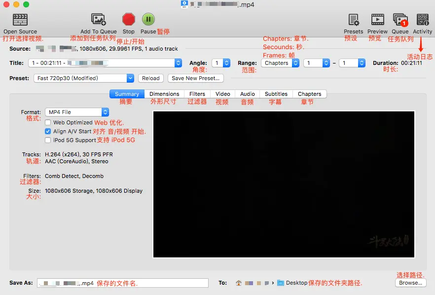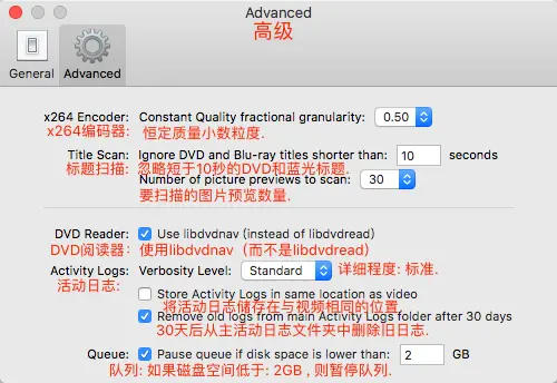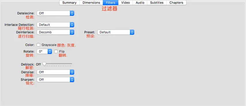 最后的 字幕 与 章节 面板我没有做注释,因为我们的目的只是视频压缩,用不到这两个面板。