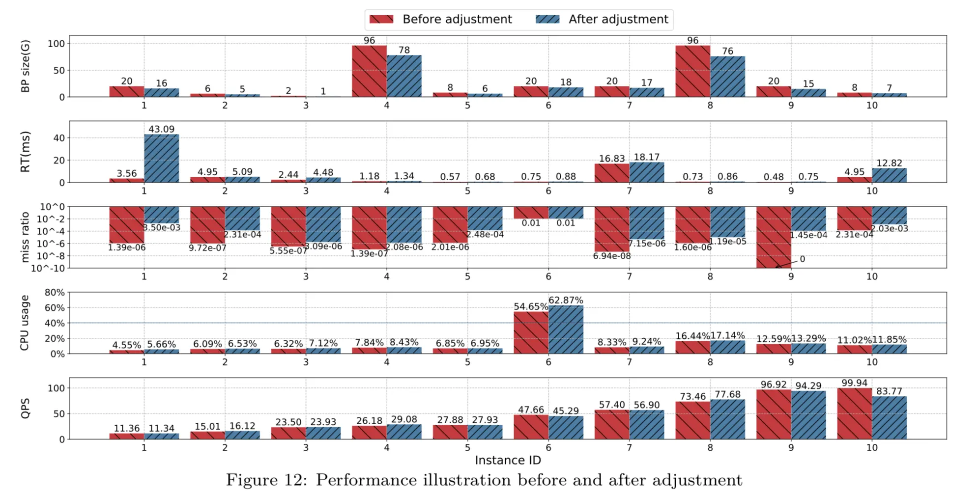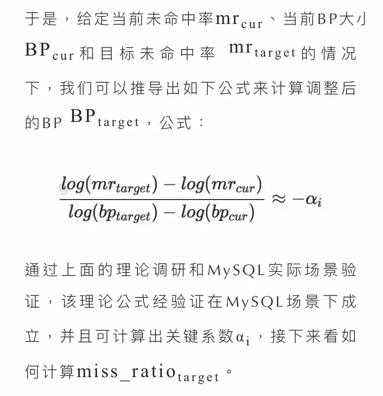 - 算法模型: 调整BufferPool大小与缓存命中率映射关系的敏感系数αα,使调整结果较为保守;