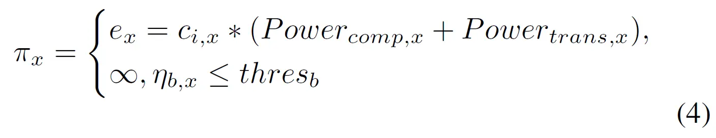 ηb,x是设备x剩余电量。在1)设备电量太低或2)能量开销过高时不愿意执行任务。