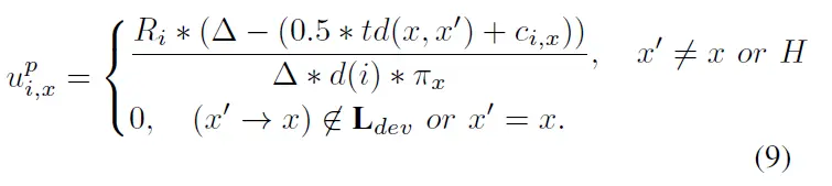 s-x是其他设备的任务分配模型。支付函数模拟了,如果给定其他设备策略时x设备采用策略sx,则边缘设备Ex可以获得多少益处。 每个设备的目标都是最大化其回报