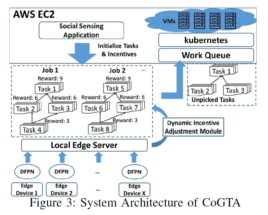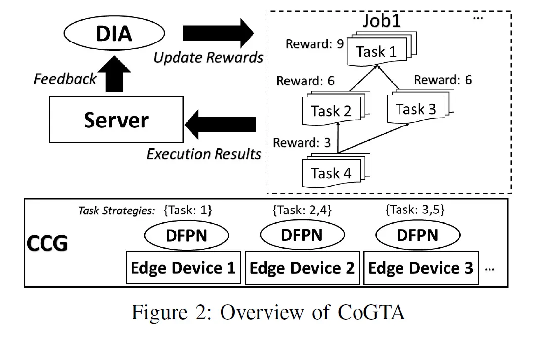 CoGTA框架如图1。边缘设备不会不间断的与网络连接,因为电池、带宽、内存和计算能力都有限。后备服务器负责任务划分和数据分析。假设边缘设备有不断变化的设备状态,并且因为隐私和同步开销不会与服务器分享动态的上下文状态。