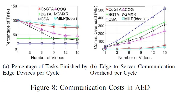 CoGTA实现了完成最多的任务量,并且造成了最少的通信开销。