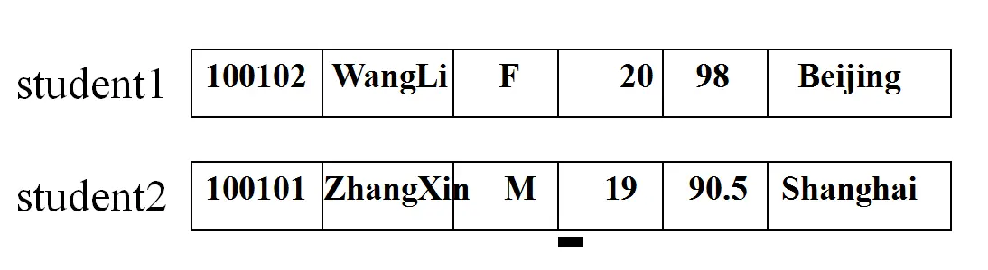 在定义了结构体变量后,系统会为之分配内存单元。例如:student1和student2在内存中各占59个字节(2+20+1+2+4+30=59)。