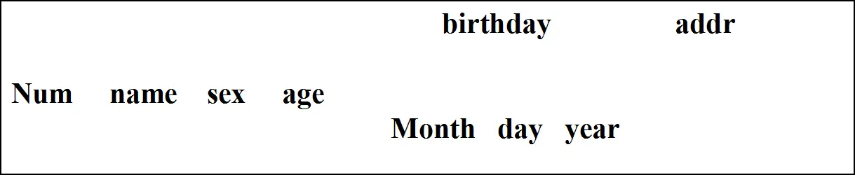 问题定义:有时需要将不同类型的数据组合成一个有机的整体,以便于引用。如:一个学生有学号/姓名/性别/年龄/地址等属性int num;char name[20];char sex;