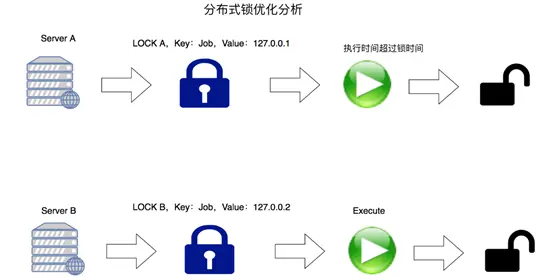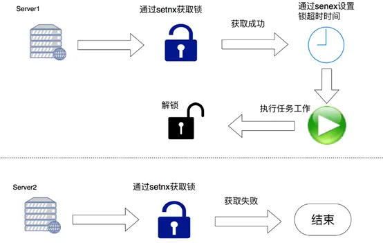 - 若 key 存在,则什么都不做,返回 【0】加锁,锁的 value 值为当前占有锁服务器内网IP编号拼接任务标识