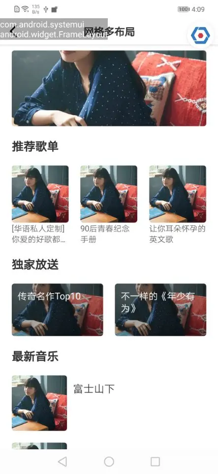 到这里,一个多布局就已经完成了,可以看到这样子进行处理,我自己总结有两点好处,一个是在封装处,对于每一个多布局item,所有的内容都由各自的Provider来进行处理,数据的来龙去脉都可以很清楚的看到,处理起来也会更加方便,代码也不会写在一堆。第二个是对于GridLayoutManager的使用,原先是RecyclerView嵌套RecyclerView,再进行子布局的处理,现在RecyclerView直接使用子布局的处理,减少了一层嵌套,虽然目前的手机对于这种嵌套的影响几乎没有太大影响感知,但是自我感觉是不是进行了一次重大的优化处理