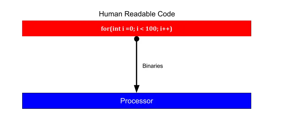 处理器能理解二进制文件。通常来说,当你编译一个用 Java 或者其他基于 JVM 的语言构建的应用程序,它将人类可读的代码编译为字节代码,这可以被 JVM 或者在底层操作系统之上运行的其他虚拟机所理解。当执行的时候,虚拟机解释这些字节码并且将他们转化为处理器能理解的二进制文件。