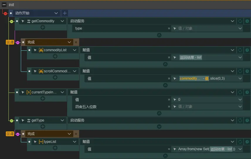 从图中可以看出可以嵌套js语法,结合起来开发项目,速度简直要飞起来。不过当项目越来越大,迭代的功能越来越复杂,这些组件看起来可能就没这么清晰了,还好ivx的团队考虑到了这点,可以将动作事件进行封装调用: