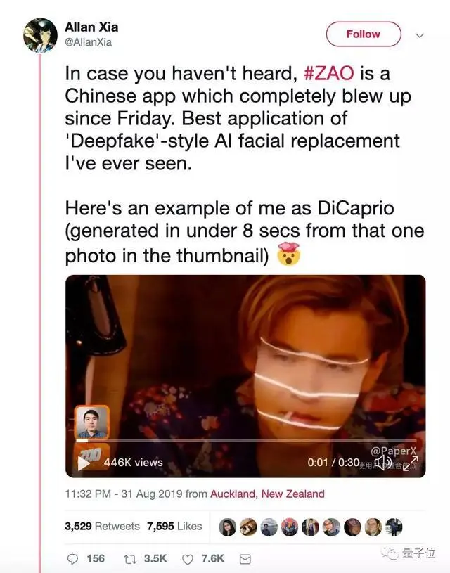 中国公司陌陌团队打造的AI换脸应用——ZAO,热度已经蔓延到了国外了。