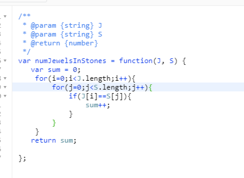 宝石与石头 给定字符串J 代表石头中宝石的类型,和字符串 S代表你拥有的石头。 S 中每个字符代表了一种你拥有的石头的类型,你想知道你拥有的石头中有多少是宝石。