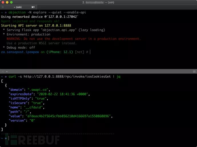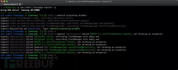 下列截图显示的是objection的主要功能,测试设备包括一台运行了iOS v10.2.1的iPad和一台运行了Android 6的三星Galaxy S5,两台设备都运行了测试应用。