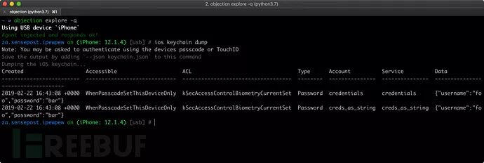 当前应用程序导出的iOS钥匙串,并将其写入到keychain.json文件中: