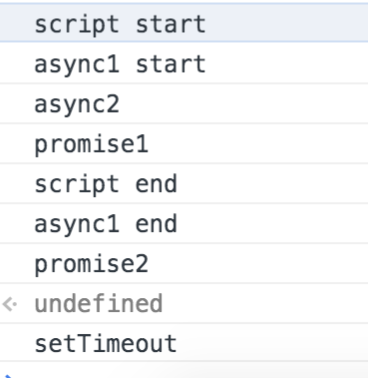 最后创建一个Promise,上面提到Promise在创建的时候回立刻执行,所以先输出promise1 然后是script end。