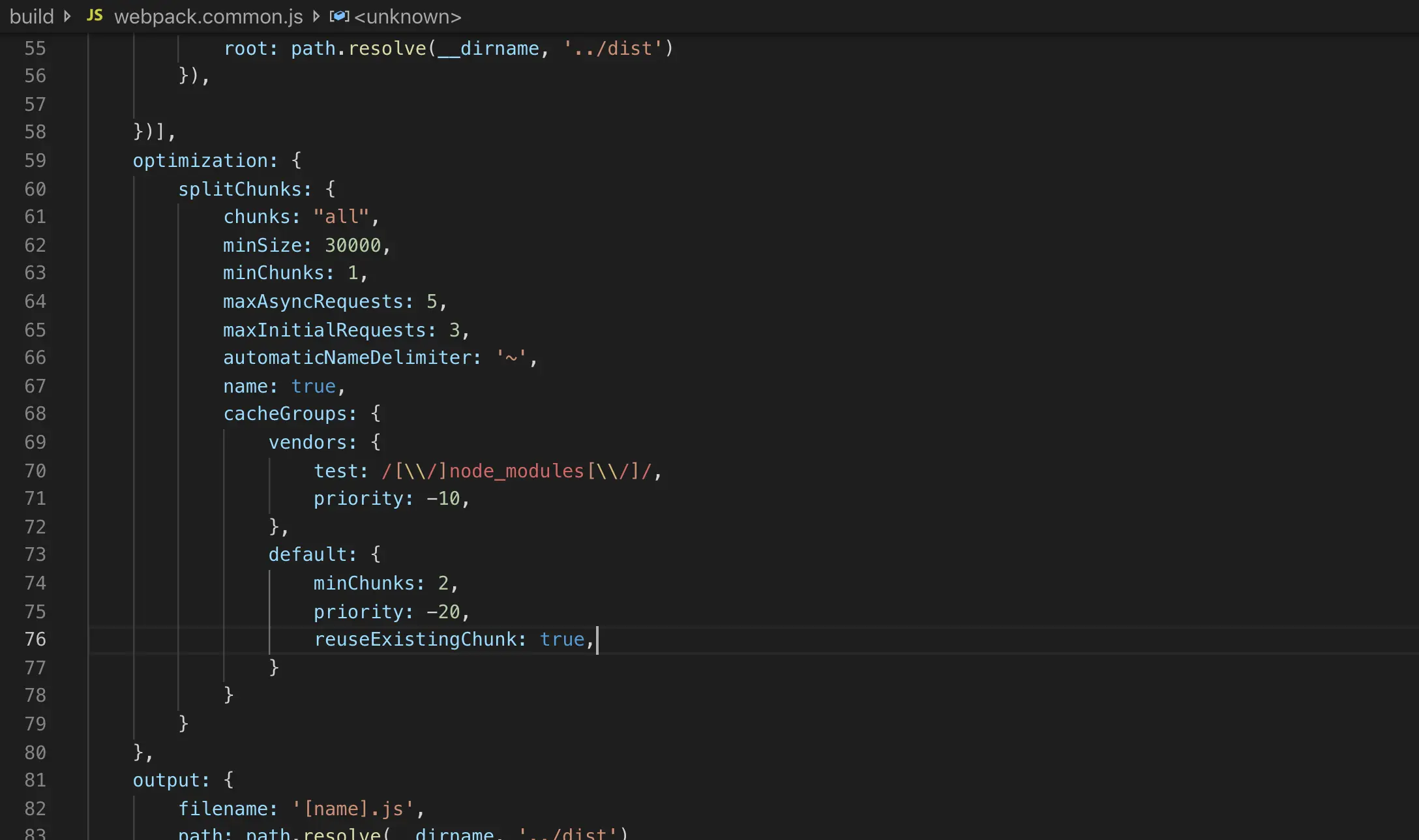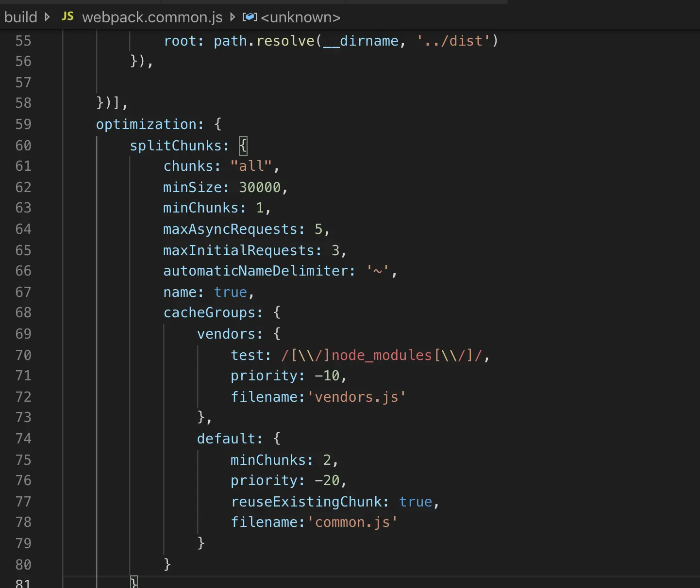 webpack官方推荐的split chunks plugin插件配置参数如下:⚠️