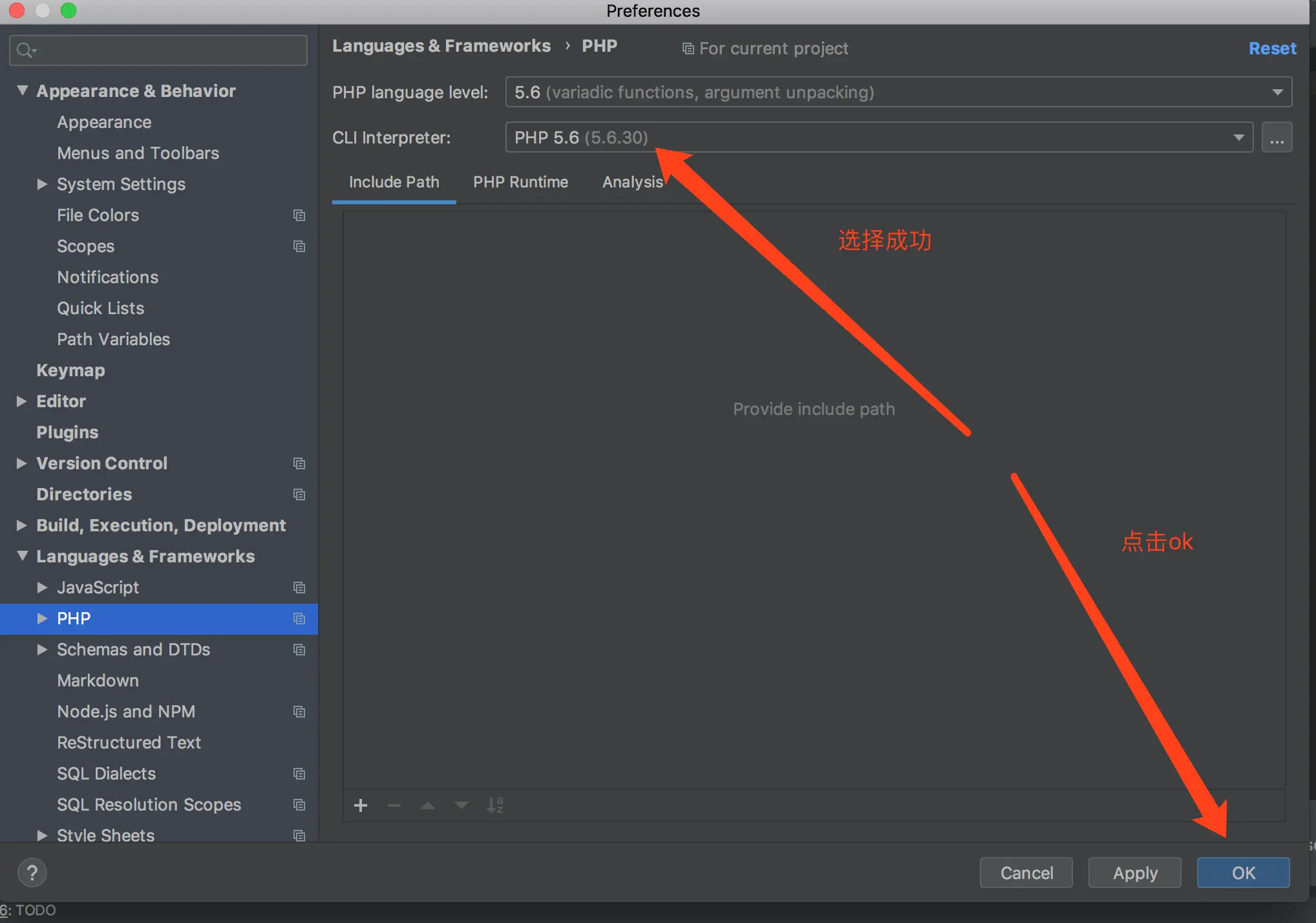 1,进入设置页,然后找到 Languages&Frameworks下的PHP,安装箭头所示,点击 ...