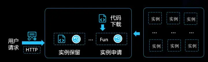 - 函数形态会针对用户的每个请求都分配一个运行实例,因此所有请求的执行体验是一样的。当没有请求的时候,平台是没有实例在运行的,所以可以做到按需请求,但是这也会造成所谓的冷启动 —— 即当用户的首次请求进入平台的时候,平台会临时拉起资源,而这个过程会消耗一定的时间。为了消除冷启,云函数平台会预先初始化一批不同规格的实例放在资源池中,当用户有请求进入时,可以快速从资源池申请一个实例,直接挂载用户的代码运行,从而降低了资源申请时间。同时,针对函数形态,平台会根据历史并发数据进行预测,帮用户预留一定量的实例,这些实例会预先分配到用户的账号下并且加载好了用户的代码,从而不仅直接消除了冷启,也增加了实例复用几率。