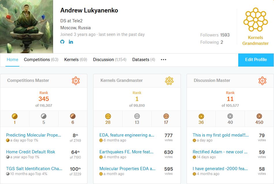 作者:Andrew Lukyanenko 机器之心编译 机器之心编辑部能在 Kaggle 竞赛中取得金牌已经是一项挑战了,而成为 Kernel Grandmaster 甚至是可遇不可求。而近日,毕业于莫斯科国立大学的数据科学家Andrey Lukyanenko在一次竞赛中达成Kaggle金牌,并在Kernel Grandmaster排名全网第一。本文是他的心路历程。