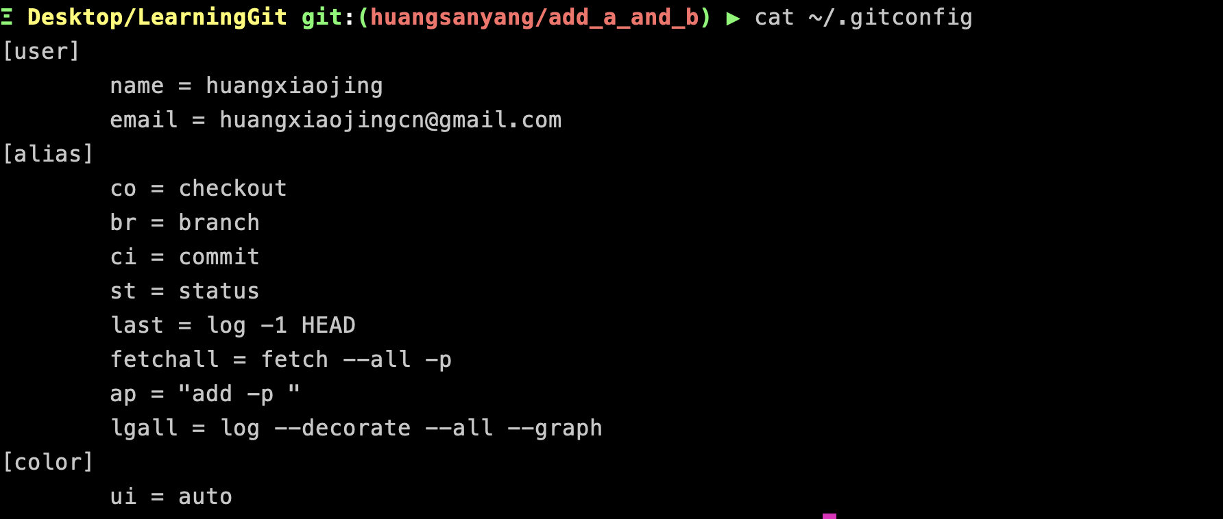 可以看到笔者将常用的几个指令进行了简化,比如 checkout 简化为 co 等等