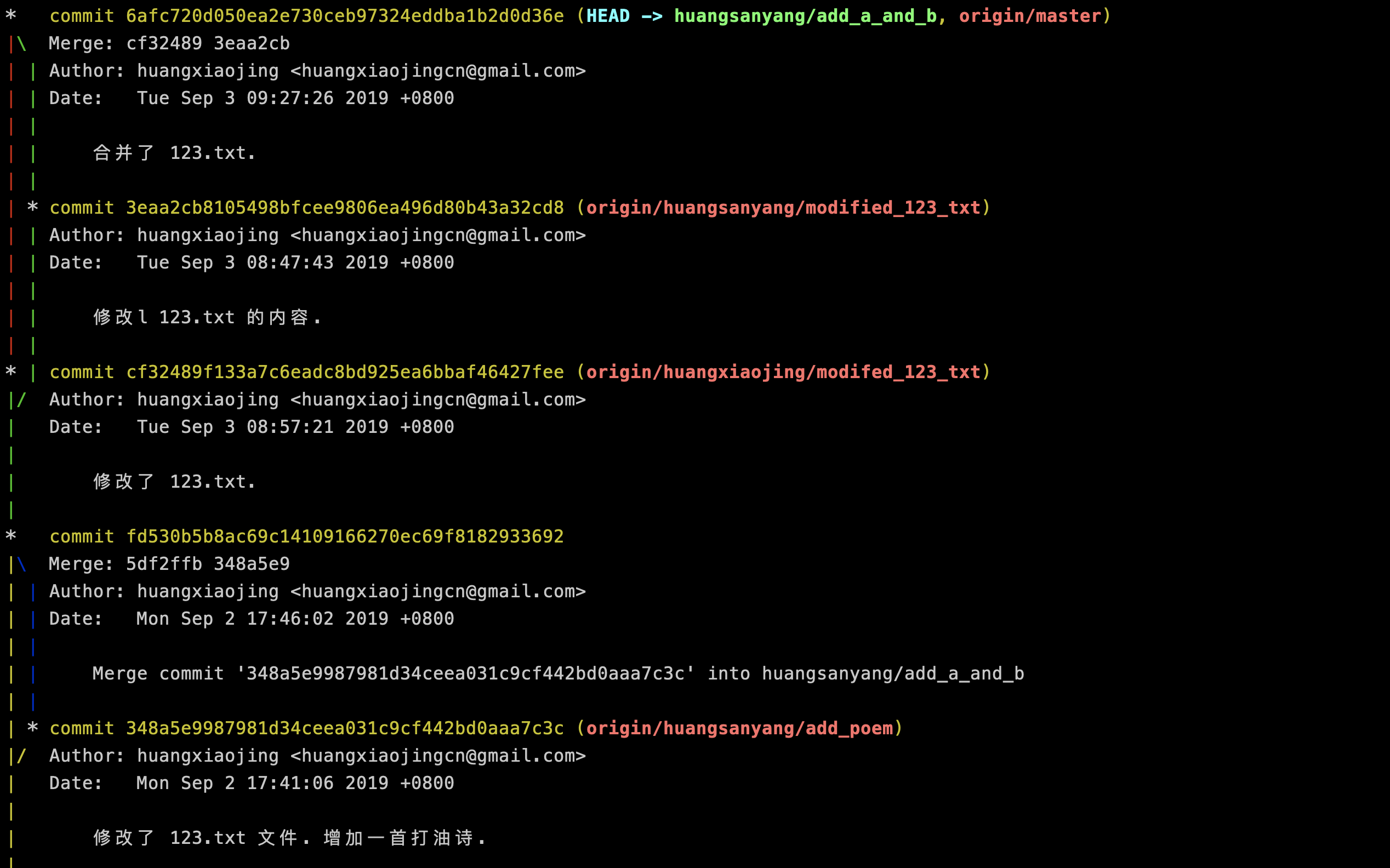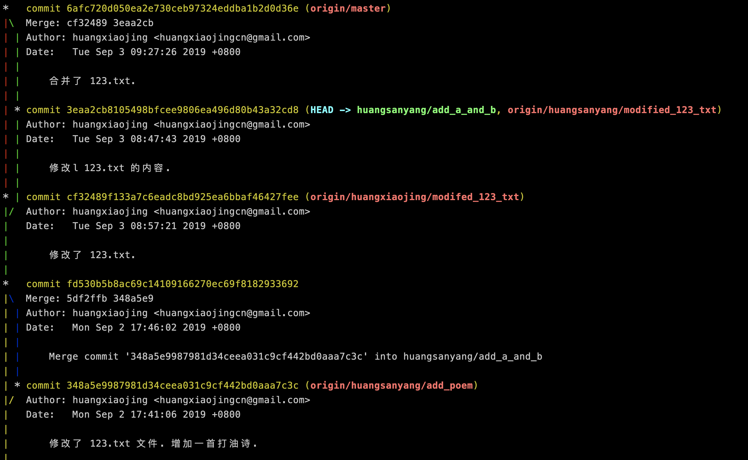 这里执行 git blame 123.txt, 可以看到创建者是谁,提交者是谁。看到这儿你还敢说不是你写的代码吗?