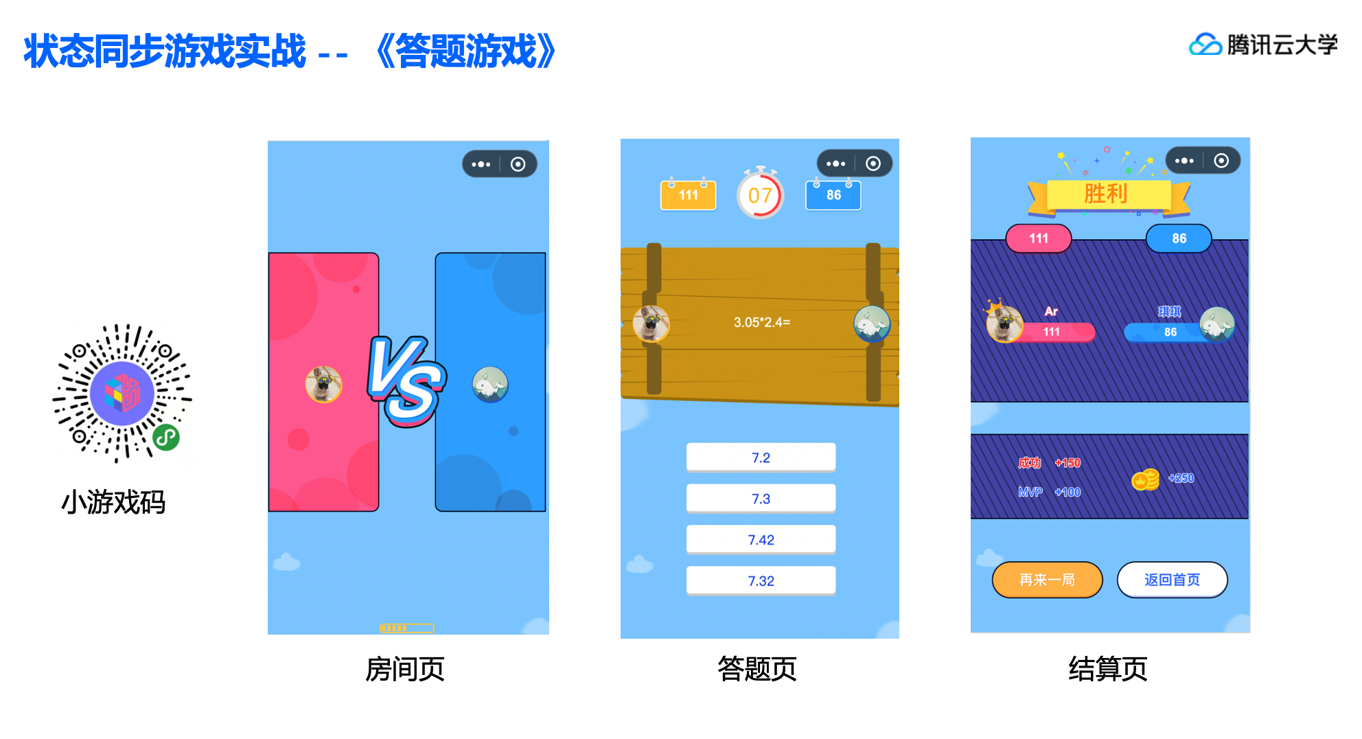 腾讯云大学本期直播课程邀请到了腾讯云Web前端工程师通过两个小游戏demo,讲解了小游戏联机对战引擎中帧同步和状态同步两种应用场景。「腾讯云大学」联合「云加社区」为大家整理了课程精彩干货!