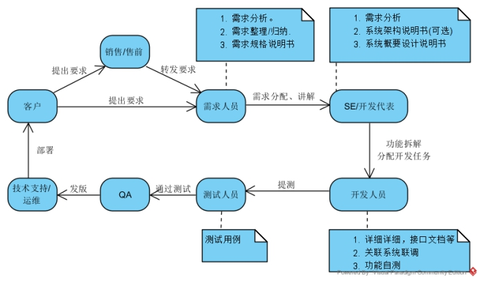 提出此想法是基于一个简单原则:“功能性需求”应该是可以通过原型呈现的。那么需求人员是需要输出原型的,而且还得比较详细、全面的呈现(毕竟要给客户确认嘛)。那么在分析需求并制作原型时,需求到技术的翻译,研发代表要配合。提交研发时可以直接与研发人员(包含测试)同步,也可交由开发代表分配功能,但需求的澄清应该由需求人员发起。
