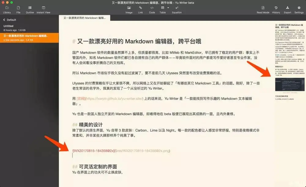 「Yu Writer」是一款国产Markdown文本编辑器,跨平台支持Win、Mac、Linux,以随意更换主题和布局,各种一键插入图片、一键建表格、插代码、链接、公式,一键切换布局使得等操作起来十分高效流畅自然。