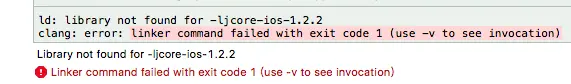 我们可以看到这句话 “library not found for -ljcore-ios-1.2.2”,翻译过来就是找不到 xxx 库。