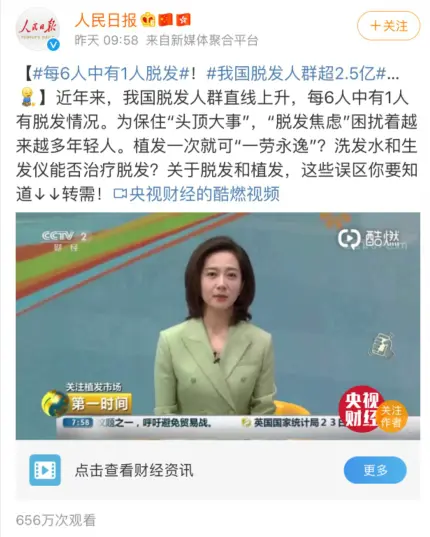 近日,大家的“头顶大事”,频繁成为微博热搜词,《人民日报》、《中国日报》等官方权威媒体纷纷对脱发问题进行了报道。