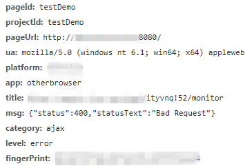 e.g: 下图是xhr请求接口返回400时捕获后的上报数据: