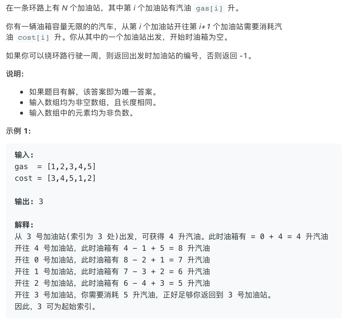 def canCompleteCircuit(self, gas: List[int], cost: List[int]) -> int: