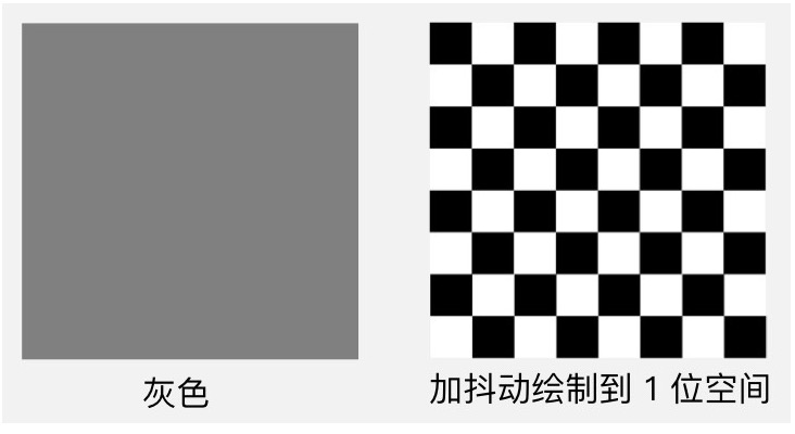 - 图像抖动 由于现在的手机分辨率越来越高,并且色彩深度默认为 32 位,效果也足够清晰了。抖动”是印刷行业和出版业中常用的一种工艺,老式的针式打印机只能打印出来黑点和白点,可是黑白图片是有灰度级的,那么如何打印出来图片呢?“抖动”由此而生,抖动试图通过在白色背景上生成黑色的二值图像来给出色调变化的直观印象,可以假想一下,黑点越密,那么远距离观察就越黑,如何控制黑点的分布就是“抖动”算法的核心。