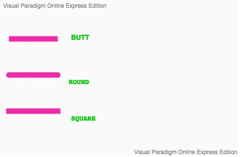 - 图形端的形状 当然这是自己的术语描述,应该叫什么不清楚。共有三种:ROUND、BUTT、SQUARE, 第一种好理解圆的形状,第三种也好理解矩形形状,第二种是什么鬼。我们看下效果图。