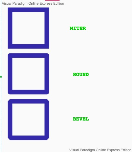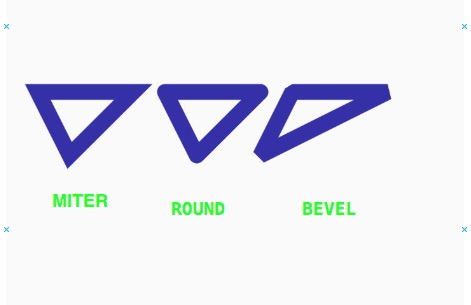 线段与线段之间的形状,可以让线段的连接看来更加圆润还是棱角分明。它也有三种: MITER、ROUND、BEVEL。从单词的的翻译来看,似乎只知道 ROUND,直接来看效果图。