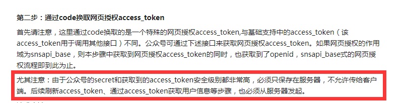 3、拿到code之后,需要把code传给后端,后端去请求微信获取openid等参数,前端是获取不到的,微信开发文档中是这么写的: