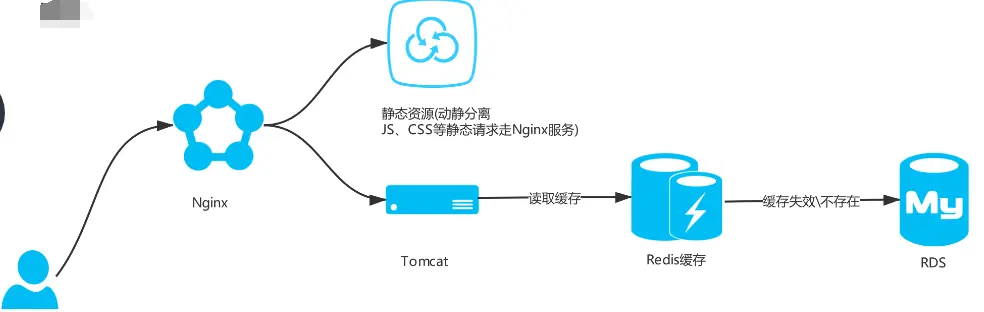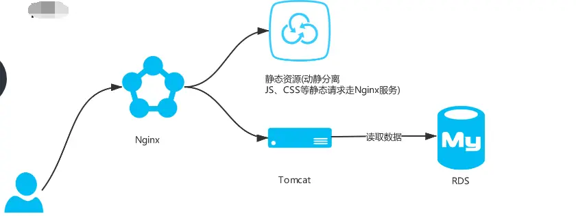 系统开始是这样子的,一个 Tomcat 拖着一个 MySql 服务,跑在一个 2C 4G 的Linux服务器上,所有的请求都走 Tomcat,所有的查询都走 MySql,看起来像一句废话?