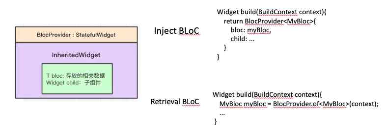 - BlocProvider组件:InheritedWidget 继承组件 + Bloc对象