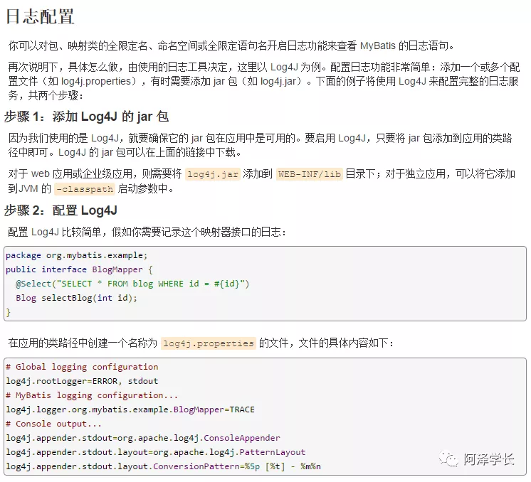 下面,我们参照 Mybatis 官方文档,进行日志框架(Log4j)配置:
