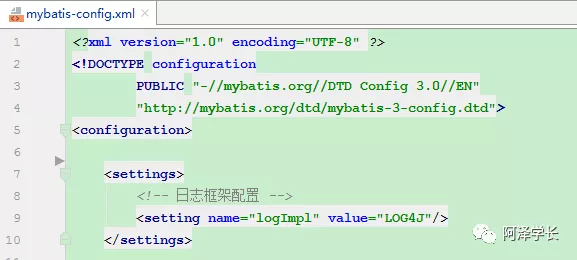 1、通过 mybatis-config.xml 全局配置文件进行日志框架配置: